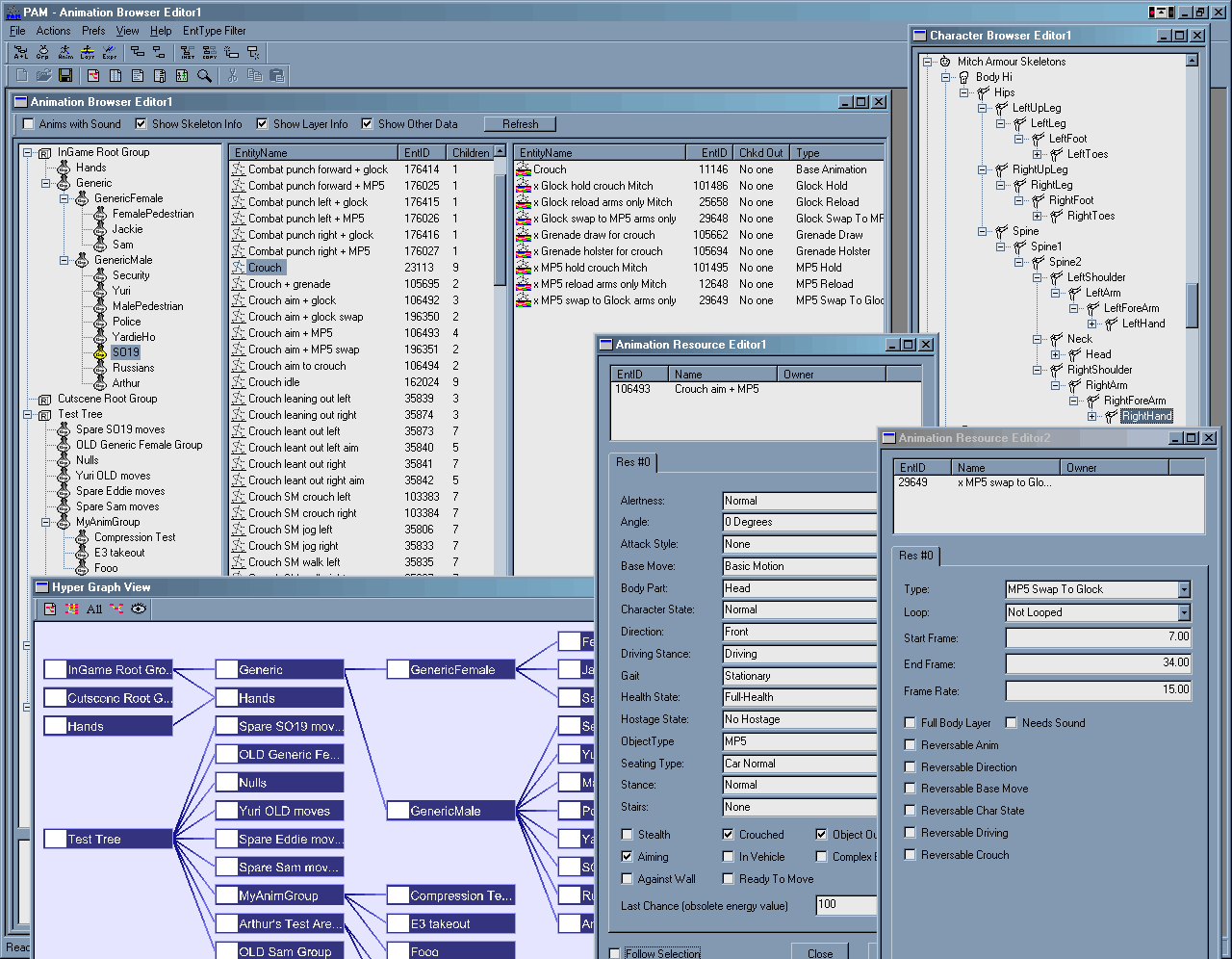 Screen shot of PAM, a tool I wrote to manage in game animations on Getaway 2.